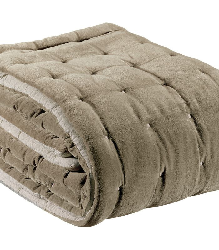 • Chemin de lit/Jeté de Lit Velours ELISE Grège 90 X 240 cm