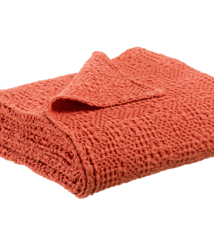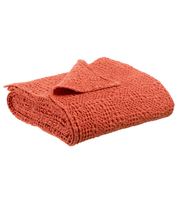 Ce plaid orangé est à la fois léger et confortable. Tissé en 100% coton, il offre un drapé élégant et souple. On craque pour son tissage en nid d’abeille volontairement irrégulier qui lui donne un effet texturé très raffiné. Décliné dans un large choix de coloris et de tailles, il sera l'accessoire déco idéal pour apporter une touche de couleur tout en douceur.